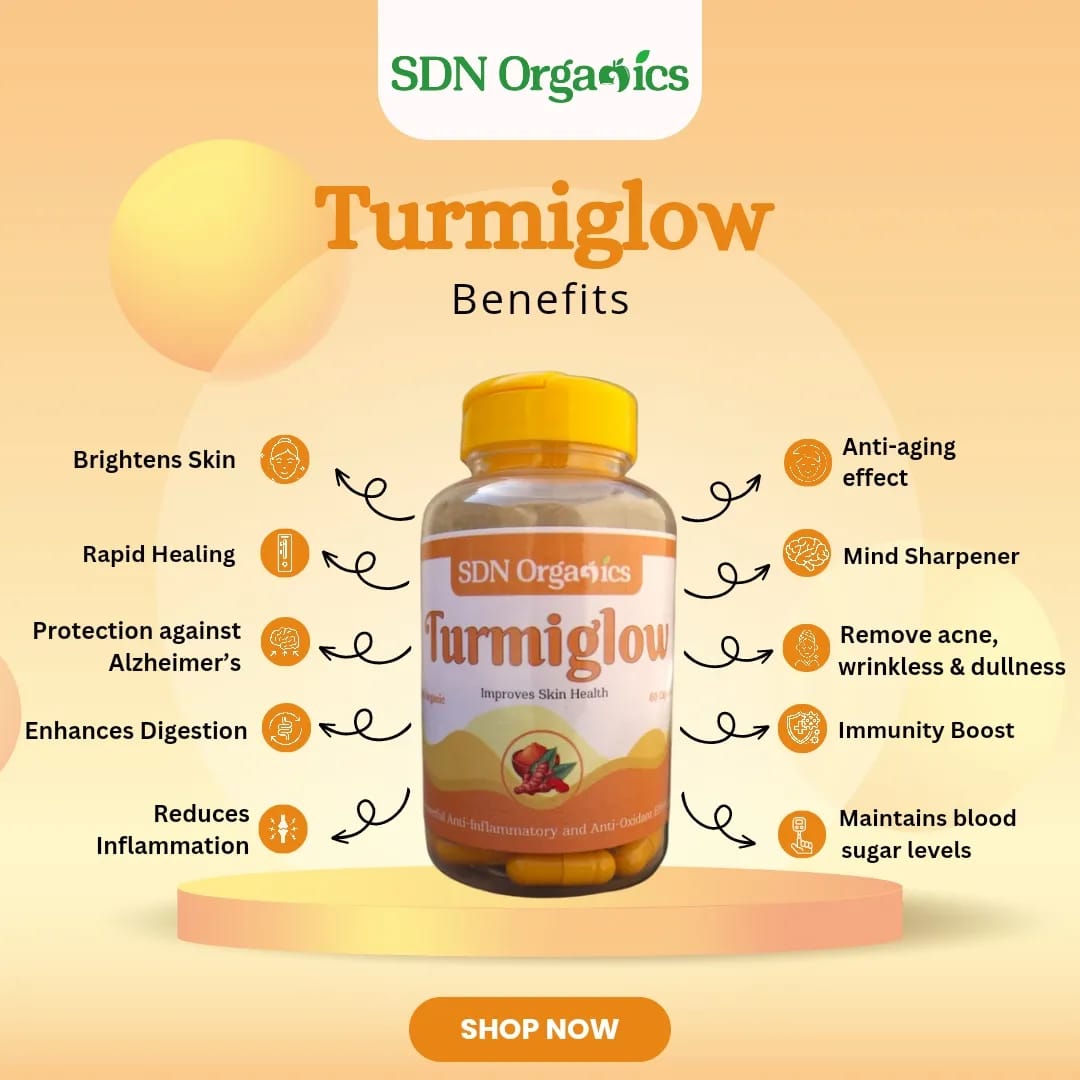 Product Descriptions: Discover the Secret to Ageless Beauty and Vibrant Health with "Turmiglow" by SDN Organics!🌟 Unveil Your Best Skin Ever 🌟Turmiglow isn't just a supplement; it's your passport to a more youthful, radiant you! With 60 capsules in...View more